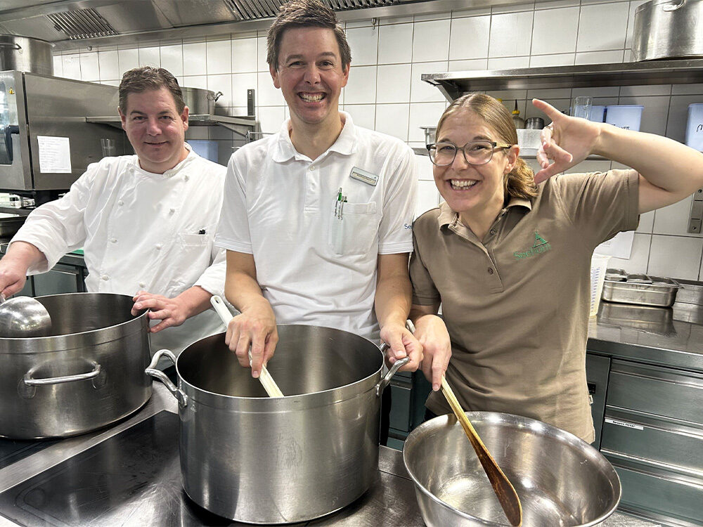 Die fundierten Berufskenntnisse und die Erfahrung unserer Mitarbeitenden lassen uns den Betrieb mit flacher Hierarchie führen. Die Mitarbeitenden werden nach ihren Fähigkeiten und Vorlieben eingesetzt. Sei es im À-la-carte- oder Bankettservice, bei der Betreuung der Hotelgäste oder rund um die kleinen und grossen Caterings ausser Haus. Die Arbeit ist für alle abwechslungsreich, interessant und wird mit viel Freude und Engagement ausgeführt. Wir pflegen eine Zusammenarbeit, die von gegenseitigem Vertrauen bestimmt wird. Jeder kennt seine Aufgaben und Kompetenzen und übernimmt Verantwortung.